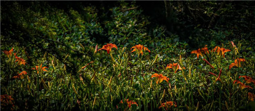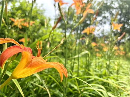 金雞菊是熱烈的,萱草花則多了一絲樸實(shí)親切,花形似百合,每一枝花萼上有多個(gè)花蕾,黃花灼灼,盛放枝頭,讓人沉醉其中,見之忘憂。
