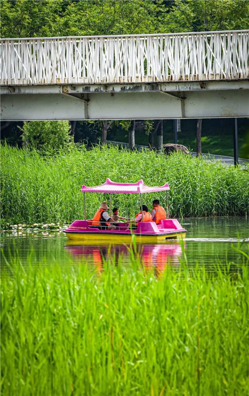 劃著游船感受清風(fēng)徐來,沿著木棧尋找蛙聲鳥鳴,放松心情,尋得一時(shí)的愜意與自然。