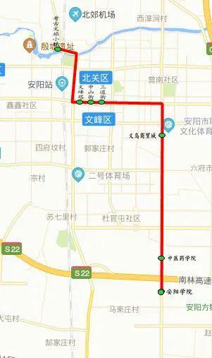 途經(jīng)站點:安陽學(xué)院、中醫(yī)藥學(xué)院(職業(yè)技術(shù)學(xué)院、護理學(xué)院)、義烏商貿(mào)城(萬達廣場、萬達嘉華酒店、丹尼斯店)、三道街(縣前街、倉巷街、新丹尼斯、藍鵲酒店)、中山街(鐘樓、美食一條街)、文峰塔(老丹尼斯、文峰小吃街)、安陽殷墟考古文旅小鎮(zhèn)