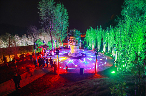夜幕降臨,中原竹寨一片霓虹,各類主題燈組炫酷亮眼,將游客帶進光影的夢境。