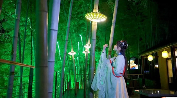在中原竹寨,“淡妝”“濃抹”總相宜。白天是靜雅的,人們觀景散心,相談甚歡。當(dāng)日月輪換,恬靜逐漸被喧鬧取代,各色燈光隨音樂聲變化而不斷閃爍,夜未央!