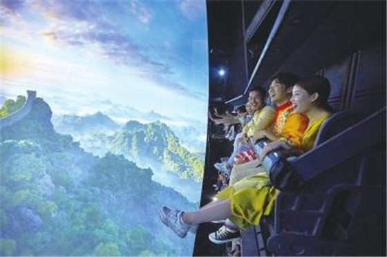 “太刺激了,我和女朋友上午就來了,在這里玩了許多游樂項(xiàng)目,比如‘海螺灣’的海底世界,集合戰(zhàn)斗機(jī)特技的‘極地快車’,催人淚下的《聊齋》曠世絕戀等,但最震撼的是‘飛越極限’項(xiàng)目,讓你坐在懸掛式座椅上穿越長城,攀登珠穆朗瑪峰,體會(huì)凌空飛翔的真實(shí)感受,在幾分鐘的時(shí)間里看遍祖國大好河山。”王浩宇興奮地告訴記者,他和女友在開封的同一所大學(xué)讀大四,過去一直想帶女友到被譽(yù)為中牟“網(wǎng)紅景點(diǎn)”的方特歡樂世界景區(qū)游玩,又嫌門票太貴,現(xiàn)在景區(qū)推出了暑期大學(xué)生專屬優(yōu)惠活動(dòng),他們就來了。