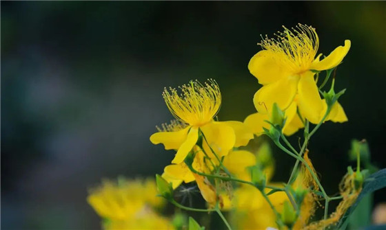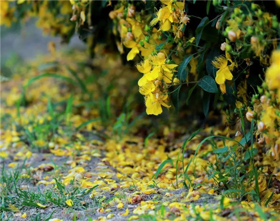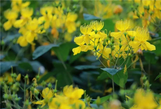 金絲桃的“金絲”,就是其雄蕊,每朵花有5束雄蕊,每一束大約有30根呈束狀纖細雄蕊,在雌蕊四周形成一圈金色“包圍圈”,別樣美麗。