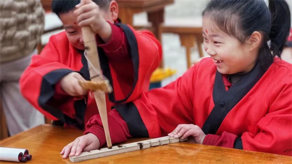 假期期間,眾多體驗(yàn)項(xiàng)目全免費(fèi),火神臺院內(nèi),鉆木取火體驗(yàn),在親手操作中了解古人人工取火的原理。拓片、投壺,滾鐵環(huán),獨(dú)輪車……這些讓7080后充滿兒時(shí)回憶的小游戲,既充滿樂趣又能領(lǐng)略華夏先賢的大智慧。