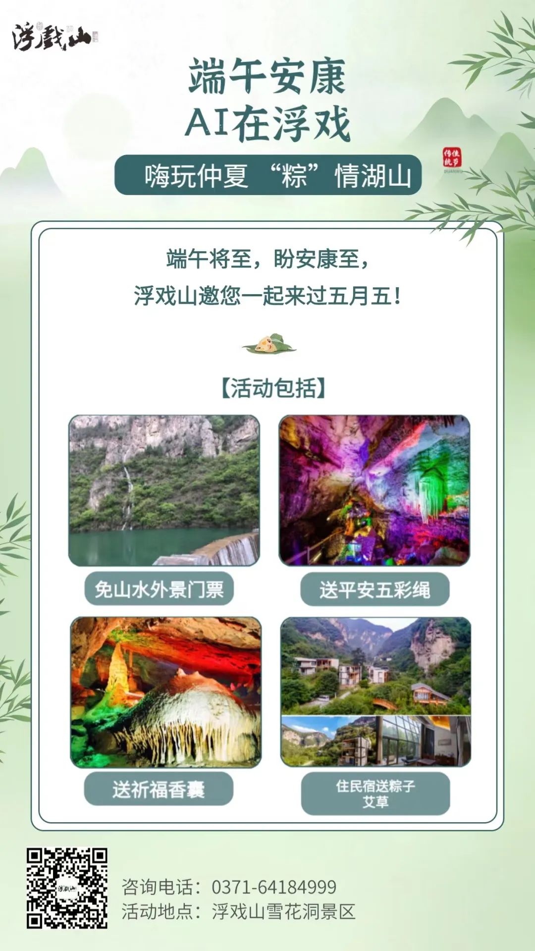 濃情端午 喜樂安康,端午臨中夏,時清日復(fù)長。又是一年端午時, 青山綿綿,將思念細(xì)致包裹。綠水悠悠,承載著滿滿心意,浮戲山讓心向山野的你悅享端午,“粽”情歡趣!