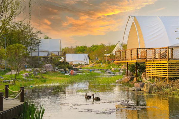 生活無解不如去野。植物文化園樹木筆直矗立,為寬闊的露營(yíng)地搭建了天然的屏障,湖中成群天鵝自在閑逛,大自然的治愈力拉滿~