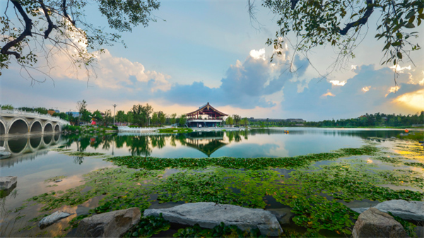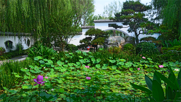 夏日的園博園,湖水靜謐,枝繁葉茂,庭院幽靜,此時(shí)的景致用一句“綠樹陰濃夏日長(zhǎng),樓臺(tái)倒影入池塘”來形容最恰當(dāng)不過。