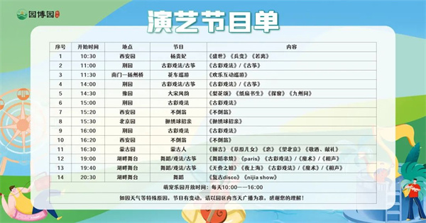 漫步在園林間消暑休閑之余,更有飄然若仙的唐宮不倒翁、歡樂滿滿的拋繡球招親,以及精彩紛呈的古風(fēng)舞蹈、古彩戲法、古箏彈奏等節(jié)目表演,豐富您的假日時(shí)光。