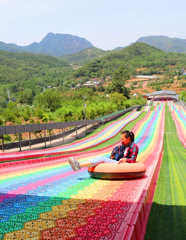 全長206米,也是省內(nèi)最長的,是由七種顏色組合而成的旱地滑雪體驗(yàn)項(xiàng)目,游客從色彩斑斕的滑道上飛流而下,驚險(xiǎn)、刺激、好玩。