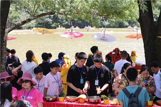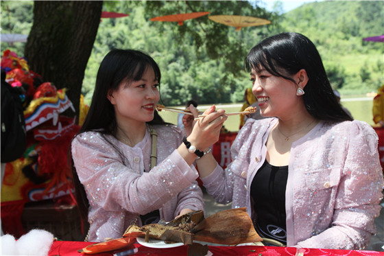 本次活動由三門峽市文化廣電和旅游局、盧氏縣人民政府共同主辦,以“傳承千年文化·弘揚(yáng)古今玄韻”為主題,開展了雙胞胎龍舟賽、漂流賽、才藝風(fēng)采秀等活動,現(xiàn)場還進(jìn)行了盧氏剪紙、鑼鼓書、木板年畫等多項(xiàng)非遺文化展演,在熱鬧的盤鼓舞獅表演后,雙胞胎們在當(dāng)?shù)胤沁z傳承人的教學(xué)下,親手體驗(yàn)包“斛粽”,引得過往游客駐足品嘗、贊不絕口,很多游客還與雙胞胎一起繡香囊、搓五彩繩,為家人祈安康、納吉祥,濃濃的節(jié)日氛圍瞬間拉滿全場。