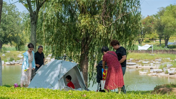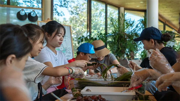 游園逛景之余,不少游客選擇放慢腳步,去享受流淌的慢時(shí)光。植物文化園,三五好友,一頂帳篷,燒烤言歡,甚是愜意。國際園溪上露營地,玩法更是豐富,游客們一起體驗(yàn)包粽子、撿鴨蛋、渾水摸魚、飛盤嘉年華、篝火音樂會(huì)等活動(dòng),多姿多彩端午。