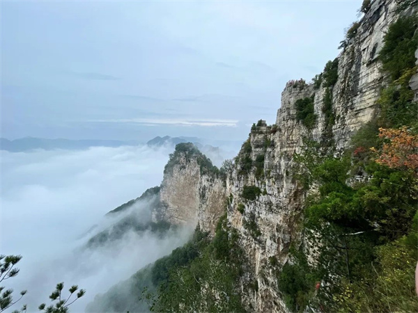 神農(nóng)山是太行山系的奇絕境地,太行山那心高氣傲的秉性,在這里盡顯無(wú)遺。一個(gè)個(gè)陡直的山巖,似刀削斧劈,絕壁凌空,氣勢(shì)奪天。