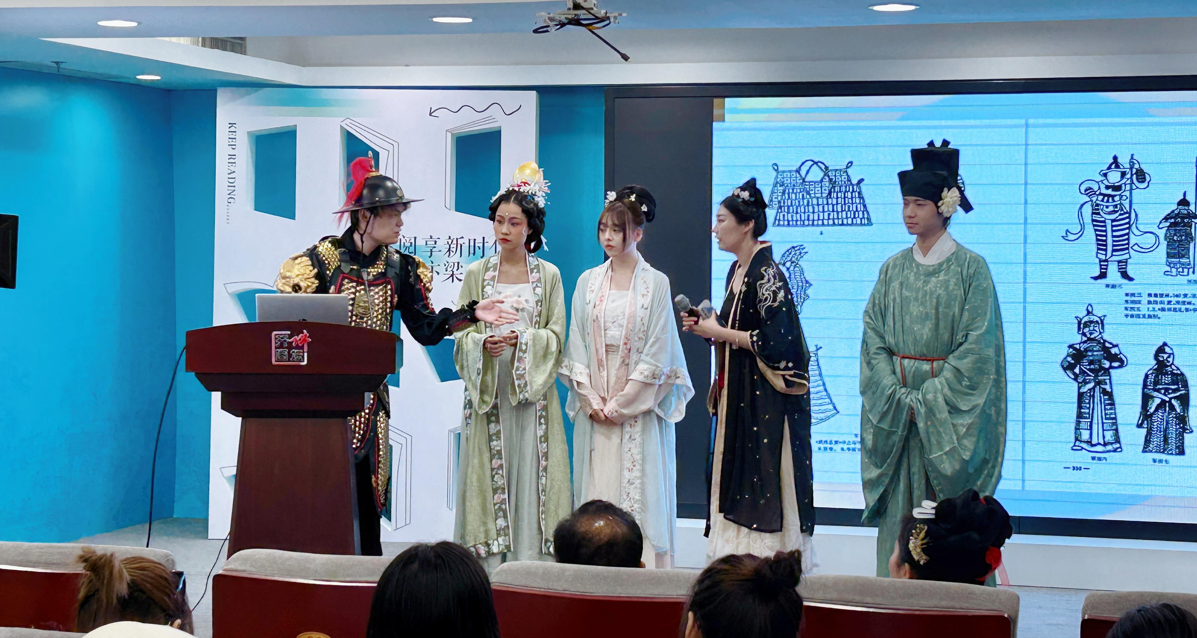 活動(dòng)中,大家跟隨董韜的介紹,了解了宋代男女服飾的分類及特征。從女子的褙子、裙、披帛,到男子的幅巾、幞頭、公服等,介紹了影視劇中常見宋代服飾的具體名稱。還邀請(qǐng)身著宋服的參會(huì)人員上臺(tái),展示不同種類宋服的特點(diǎn),并現(xiàn)場(chǎng)點(diǎn)評(píng)。