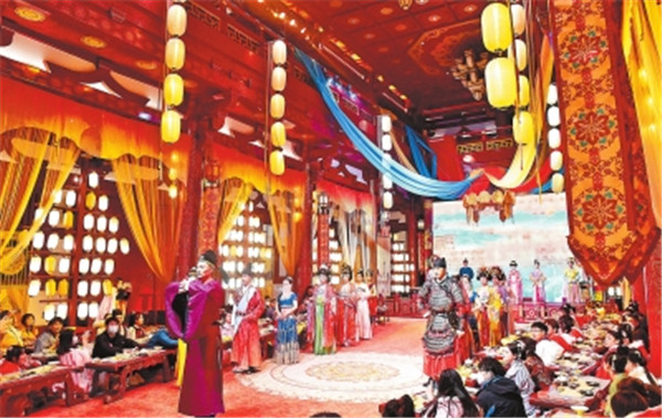 “創(chuàng)意活化”再現(xiàn)歷史場(chǎng)景。厚重多彩的文博資源,讓洛陽(yáng)成為“東方博物館之都”。102座特色博物館遍布全城,成為城市新地標(biāo)、文旅新名片。洛陽(yáng)推出全國(guó)首個(gè)歷史人文類“博物館奇妙游”項(xiàng)目,精心策劃了《唐宮樂宴》《明堂韶樂》等沉浸式實(shí)景演藝,讓游客與女皇對(duì)話、同古人飲茶,實(shí)現(xiàn)一朝穿越千年、夢(mèng)回盛唐。