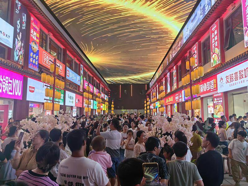 二十四坊不僅是美食薈萃的好地方,也是游玩打卡的好地方。這里不僅有臨街商鋪,還有商業(yè)內(nèi)街。這里有商丘首家內(nèi)街天幕,面積達(dá)800平方米。