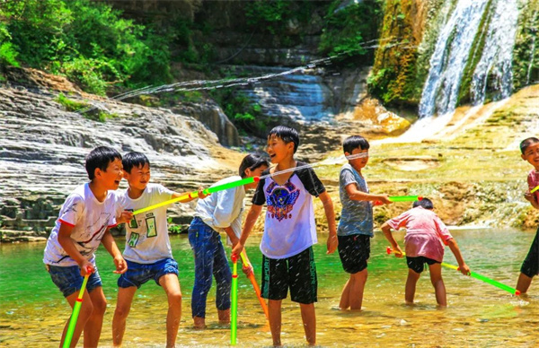 在潑水戲耍中得到宣泄