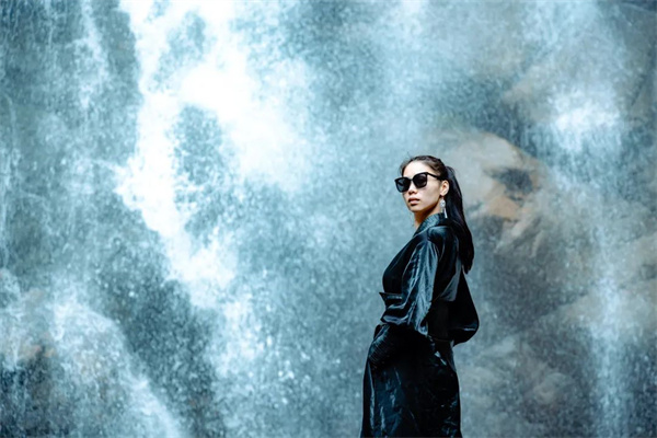 在瀑布下拍照的人,同樣美得光彩奪目。