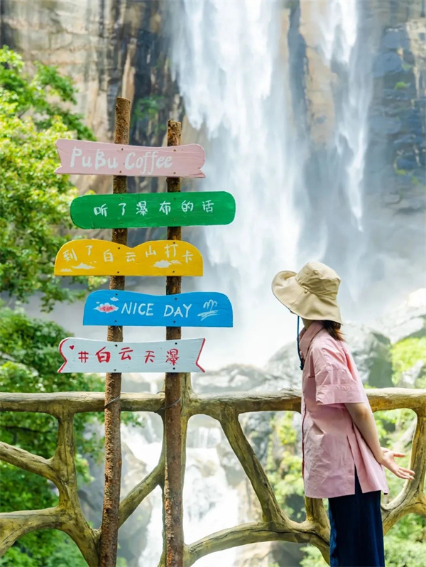 白云山「駝峰瀑布」360°無死角,水流沒有九龍瀑布那么大,在這里拍照片時表情更加放松、肢體更加靈活自如,加之層次豐富的瀑布使畫面更加豐滿,怎么拍都可出大片。