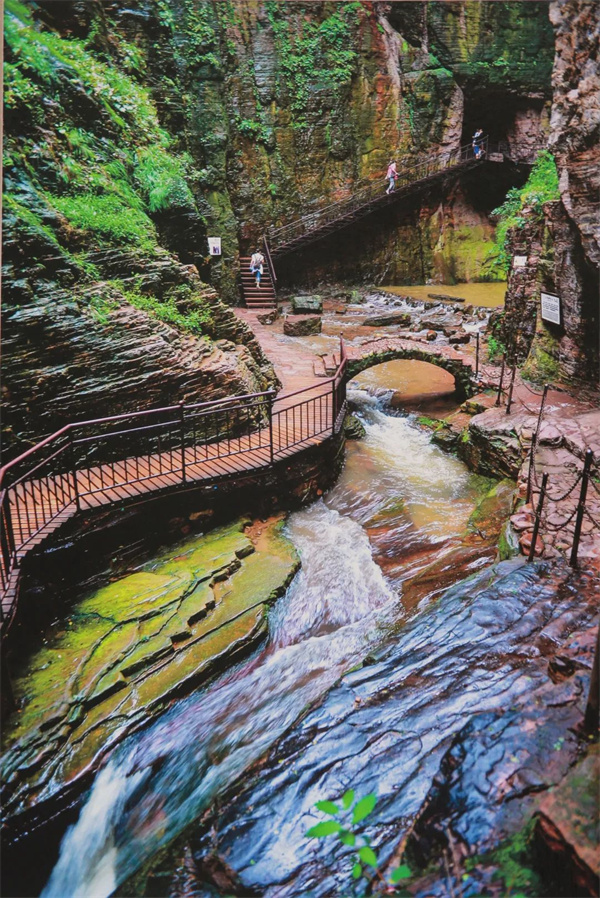 三疊瀑、雨花瀑、通天閣、神仙島、魯班飲牛槽等景點,飛瀑流泉、碧潭如珠、松樺映翠、靈石妙趣。