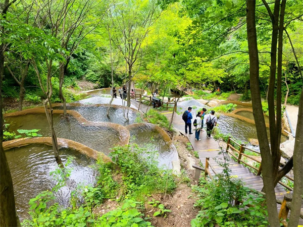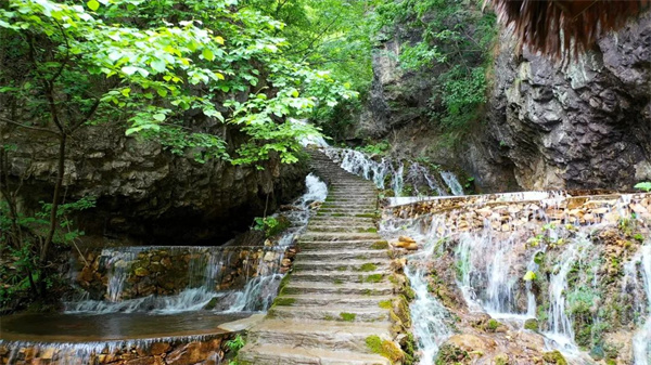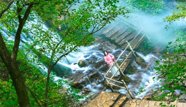 流水縈繞,三步一潭,五步一瀑,大小不一的瀑布,悠然傾瀉,沁人心脾的涼意與清新空氣交織在一起,讓你享受清涼、感受自然。