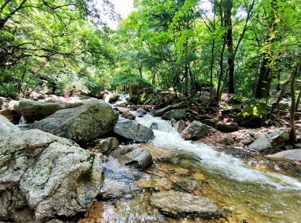 不同于高山之上的飛流激瀑,這里更多是流水潺潺,嘩嘩流水聲響徹山谷,溫柔靈動。