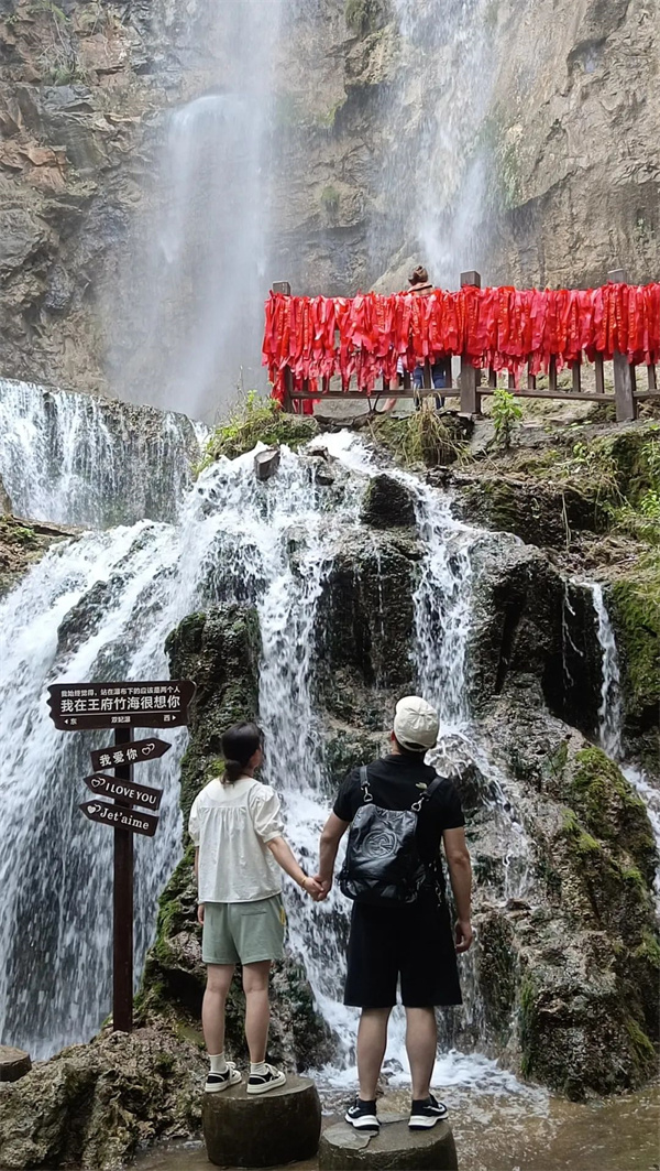 不少情侶和夫妻在這瀑布下拍照打卡,王府竹海的瀑布有幸見證了無數(shù)的愛情故事,渲染了無數(shù)的浪漫氛圍。