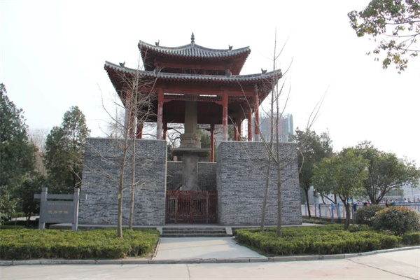 彼岸寺碑位于漯河市郾城區(qū)實(shí)驗(yàn)中學(xué)院內(nèi),又稱“彼岸寺經(jīng)幢”、龍塔古篆”,為明清郾城八景之一。彼岸寺碑為北宋景德年間刻立。碑文記述尉氏僧人契宗大師于太平興國(guó)年間來(lái)此募資十五年,重修彼岸寺的情況。彼岸寺碑通高12.18米,由底盤(pán)、基座、篆文碑、造像碑、頂?shù)葮?gòu)成。除頂部為磚石結(jié)構(gòu)外,其余構(gòu)件均為青石雕琢對(duì)接而成。彼岸寺碑設(shè)計(jì)精湛,造型古樸美觀,通體雕刻人物、佛事等故事,氣韻生動(dòng),堪稱一絕,2006年,被國(guó)務(wù)院公布為第六批全國(guó)重點(diǎn)文物保護(hù)單位。