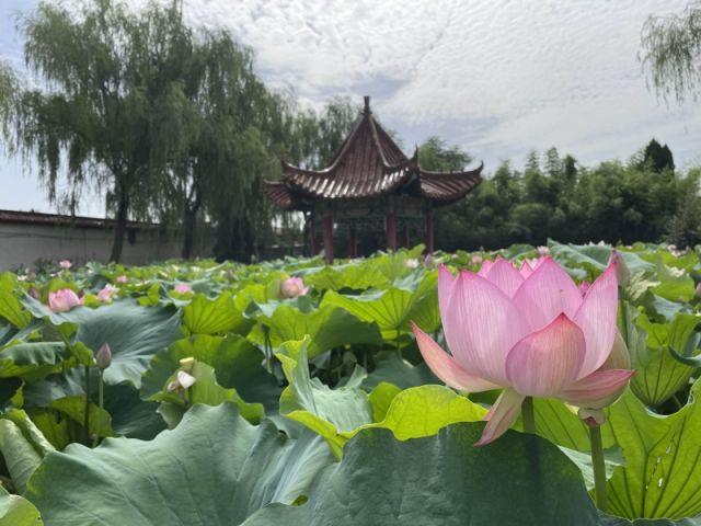“每年荷花盛開的時候都會有很多人結(jié)伴過來拍照觀賞,雖然天氣炎熱,但是咱們這兒花開的景象美不勝收,特別是今年村室外的廣場上新增添了很多游玩設(shè)施,三五成群的孩子過來一玩就是大半天,已經(jīng)成了十里八村出名的熱門打卡地,群眾都說咱們這環(huán)境越來越好,是炎熱夏日的好去處。”站在荷花池旁整理荷葉的袁莊村駐村第一書記宋柄恒滿眼間都是自豪。