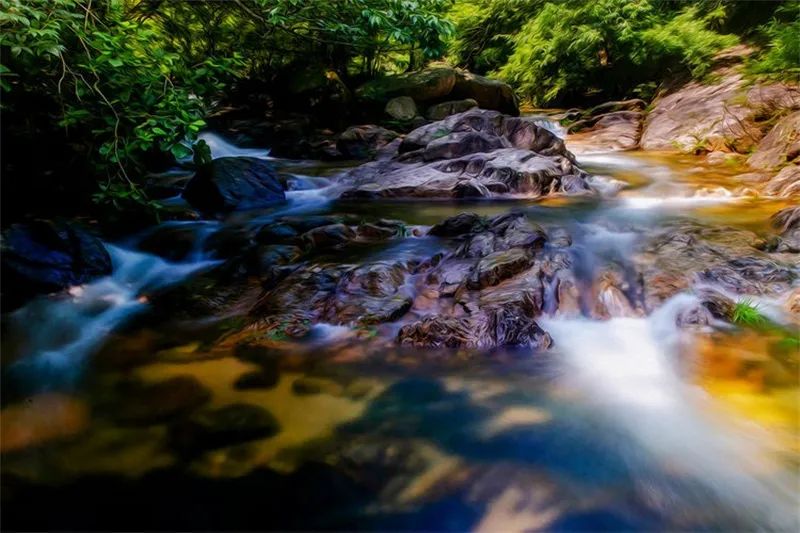 靈動的溪流,倒映著濃得化不開的翠綠,定格下七彩斑斕的流云,懷抱著云蒸霞蔚的群山。磅礴的山,靈動的水,詭譎的云……大自然的鬼斧神工造就出人間仙境,輕輕觸動你我靈魂。