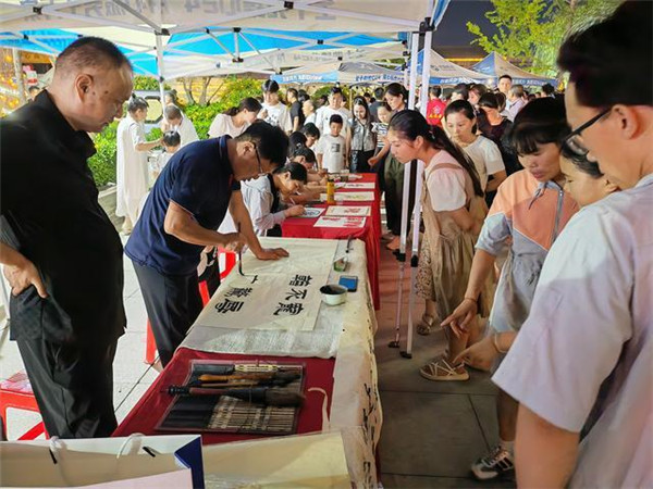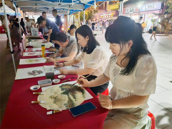 7月22日,夏日傍晚,隨著炎熱退去,在濮陽縣濮水小鎮(zhèn),散步的人們嘴角帶著笑意,游逛超IN非遺市集,或親手體驗(yàn)著剪紙、秸稈畫等非遺創(chuàng)作,或邊走邊看琳瑯滿目的文創(chuàng)產(chǎn)品,滿身輕松。