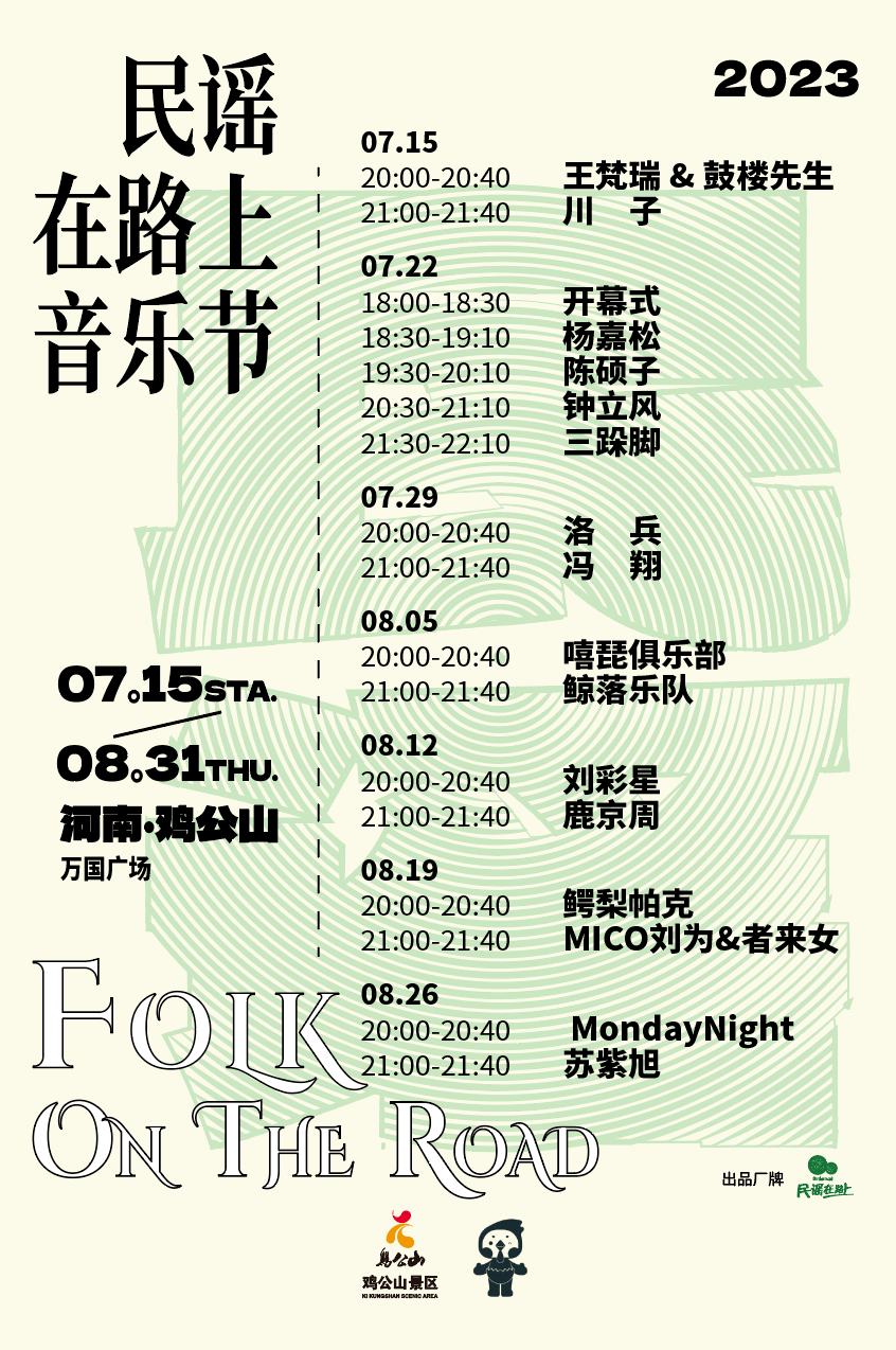 7.22日晚,2023雞公山清涼文化月暨大別山(信陽(yáng))文化旅游季在國(guó)家5A級(jí)旅游風(fēng)景區(qū)——雞公山景區(qū)正式拉開(kāi)帷幕。來(lái)自中國(guó)民謠屆的著名音樂(lè)人楊沁松、三跺腳樂(lè)隊(duì)、鐘立風(fēng)、陳碩子帶著他們的經(jīng)典作品傾情獻(xiàn)唱。