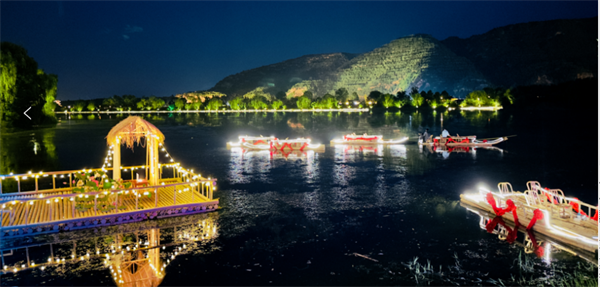 除此以外,觀光小火車、無(wú)動(dòng)力游樂(lè)園、櫻花許愿樹(shù)、跑馬場(chǎng)……各種游玩設(shè)施應(yīng)有盡有,再配上藍(lán)天白云、九曲黃河的壯美景色,足以讓你眼花繚亂、目不暇接、大呼過(guò)癮。游玩結(jié)束,夜幕四合,可以就近到東寨民宿居住,風(fēng)格典雅,設(shè)備齊全,價(jià)格實(shí)惠,體味田園寧?kù)o的夜色風(fēng)景。
