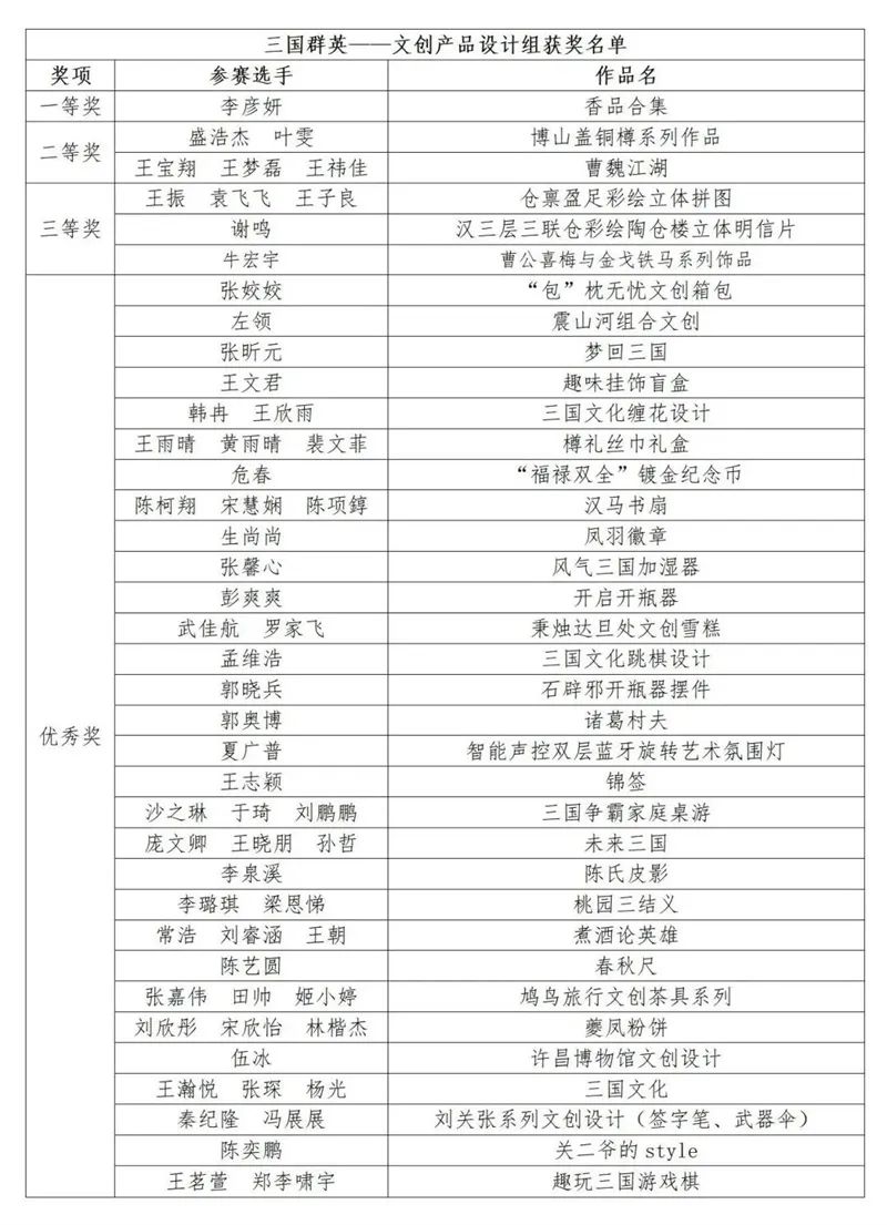 河南省博物館文創(chuàng)大賽許昌站暨三國文化IP全球創(chuàng)作者大賽獲獎(jiǎng)名單