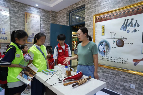 中醫(yī)藥文化不僅是中國(guó)古代科學(xué)的瑰寶,也是打開中華文明寶庫的鑰匙,是中國(guó)人的“魔法藥水”,同天地五行和人體五臟相溝通,屬于人類繁衍至今的寶貴秘藏,引全世界追隨尊崇。在中醫(yī)研學(xué)之旅中,青少年紛紛化身“小郎中”,透過一幅幅圖片、一篇篇文章、一件件實(shí)物,了解中醫(yī)藥的前世今生,聆聽“懸壺濟(jì)世”“春滿杏林”等中醫(yī)典故,同神農(nóng)一起辨識(shí)百草,體驗(yàn)“望聞問切”四診法,還可親手制作香囊、古法山楂丸等有趣實(shí)踐活動(dòng),在本草飄香中進(jìn)入一個(gè)頗具靈性的神秘中醫(yī)藥世界。