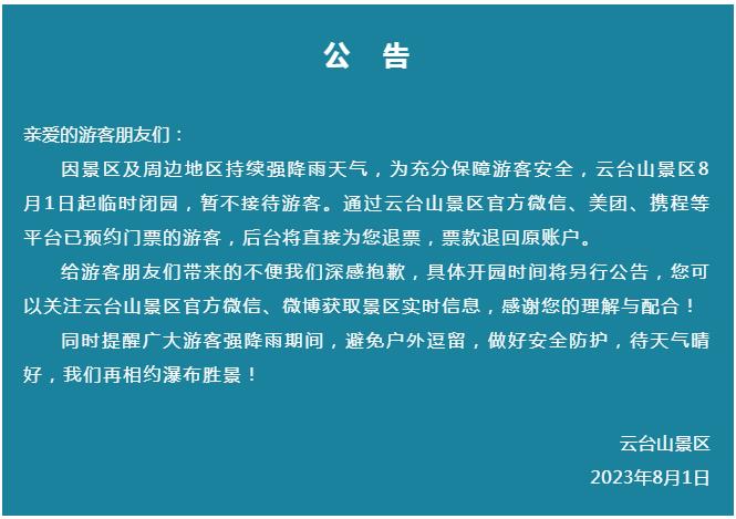 緊急通知:受天氣影響 云臺(tái)山景區(qū)臨時(shí)閉園