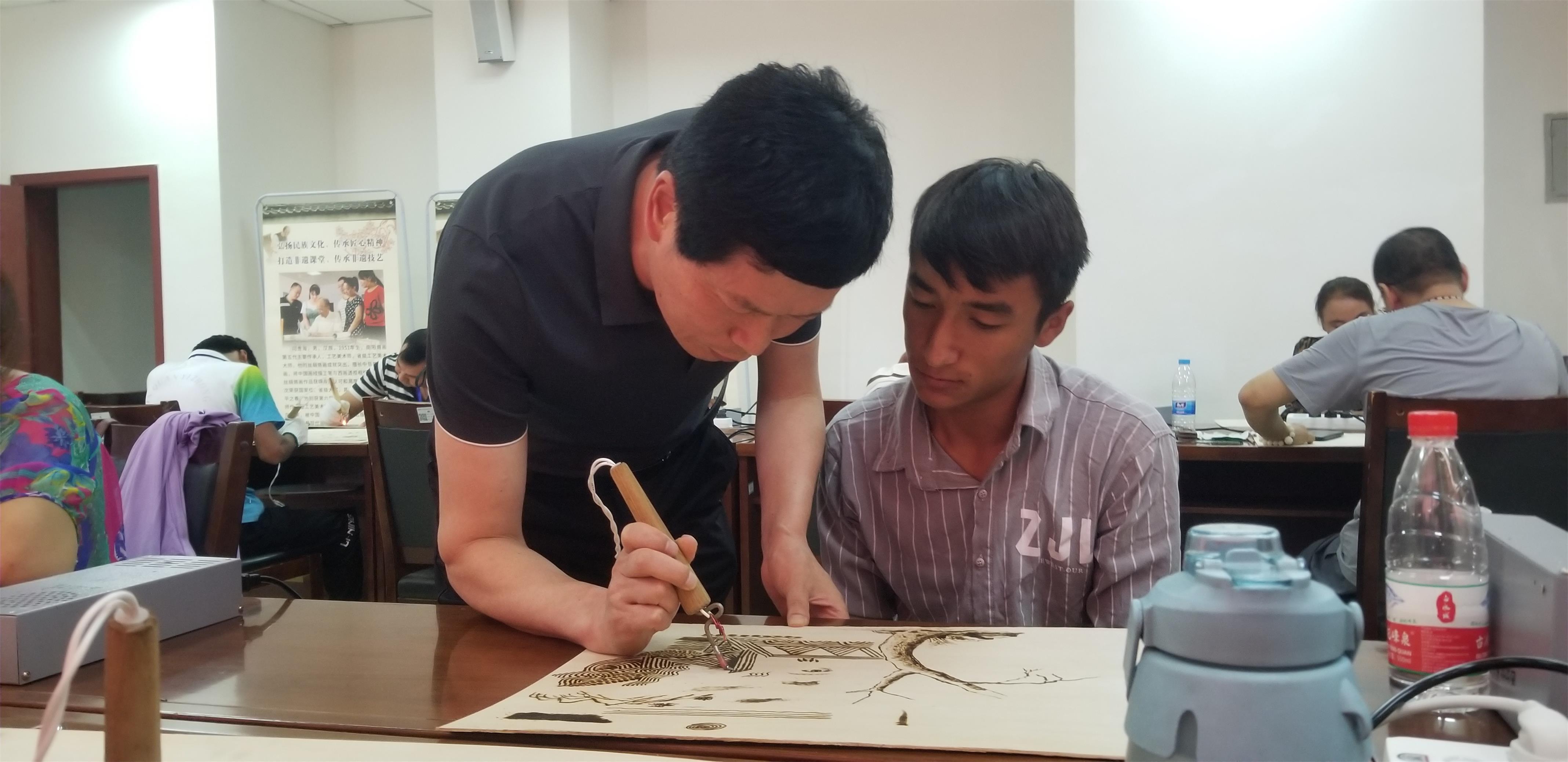 “辦班的目的是把南陽的烙畫技法包括南陽烙畫的項(xiàng)目帶到阿克蘇地區(qū),讓阿克蘇地區(qū)群眾學(xué)到南陽烙畫的精髓,把阿克蘇地區(qū)的文化與旅游產(chǎn)品相結(jié)合,帶動(dòng)當(dāng)?shù)厝罕娫鍪罩赂,更好地推?dòng)阿克蘇地區(qū)鄉(xiāng)村振興。”李哲表示。