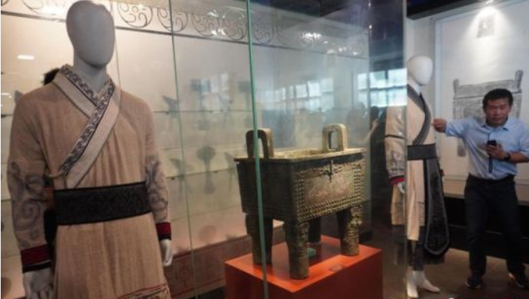 中國社會(huì)科學(xué)院考古研究所研究員唐際根介紹商代服裝 中國新聞社記者 韓章云 攝