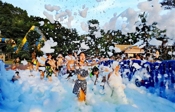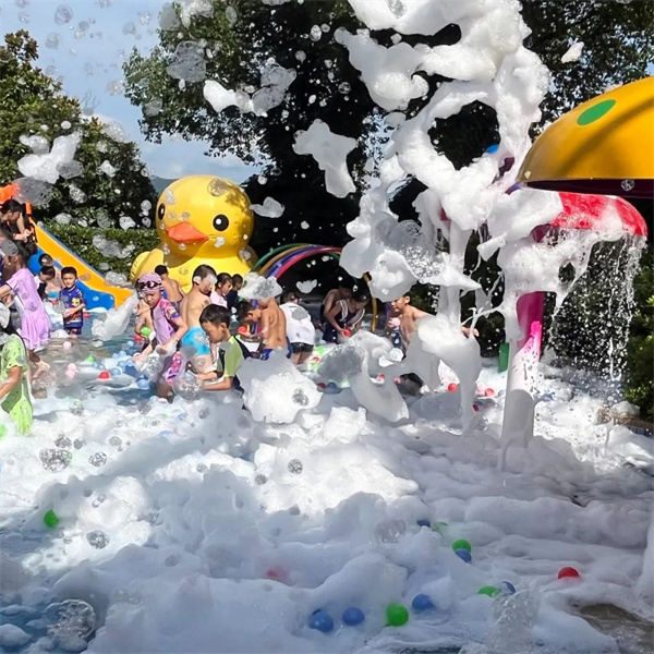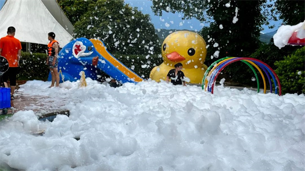 漫天飛舞的泡泡從天而降,被一大片柔軟泡泡親密圍繞,仿佛走進一片下雪天,在泡沫中盡情嬉戲玩耍,讓你忘掉燥熱 清涼又浪漫。