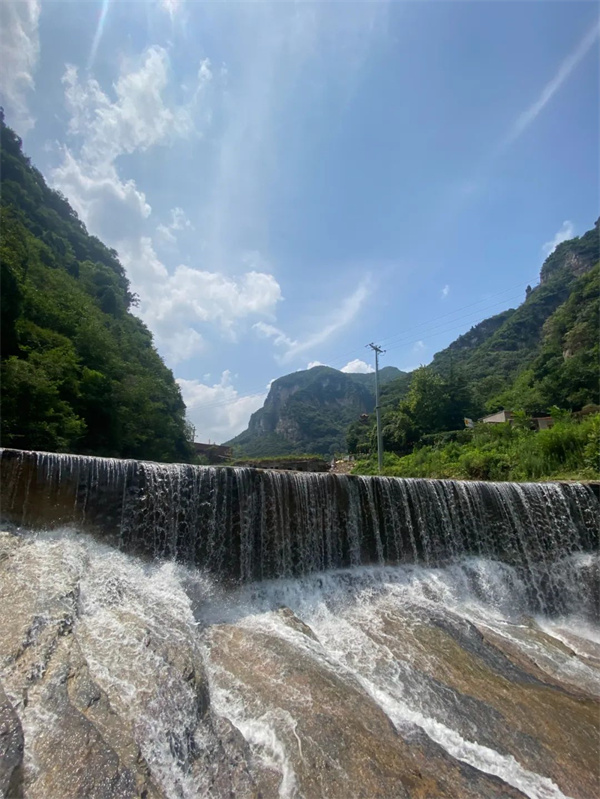 高山流水意,最撫凡人心。站在瀑布下,緊閉雙眼,雙手緩緩抬起,去觸碰水汽,任由銀花細(xì)雨撲面來(lái)。那一刻仿佛誤闖了金庸筆下的江湖,化身為在飄飄灑灑的水霧中舞劍的俠客。睜開(kāi)雙眼,飛奔的水流傾瀉而下,像神話中的仙女披著銀紗,在陽(yáng)光的照耀下,光彩奪目。