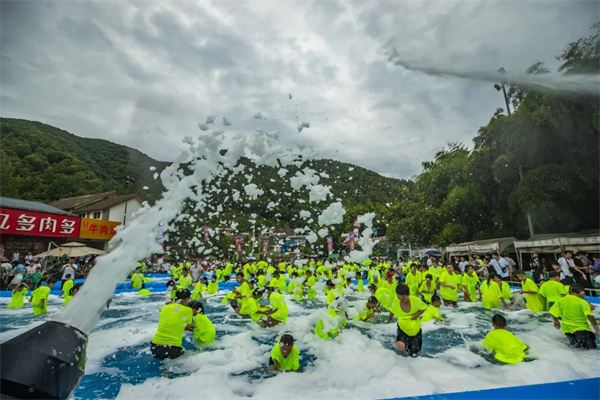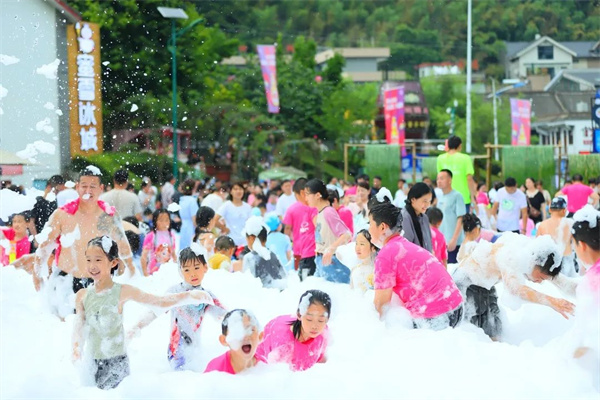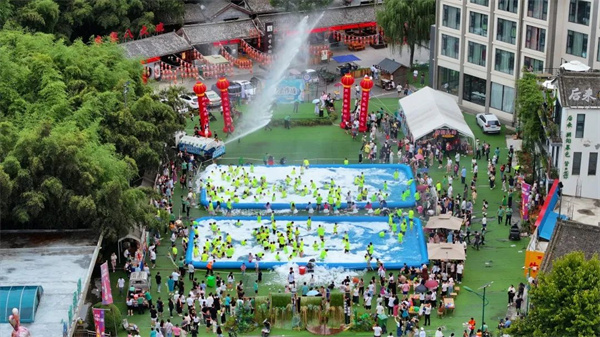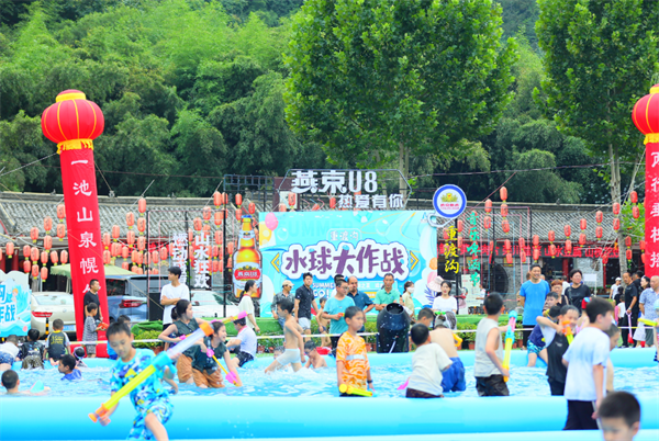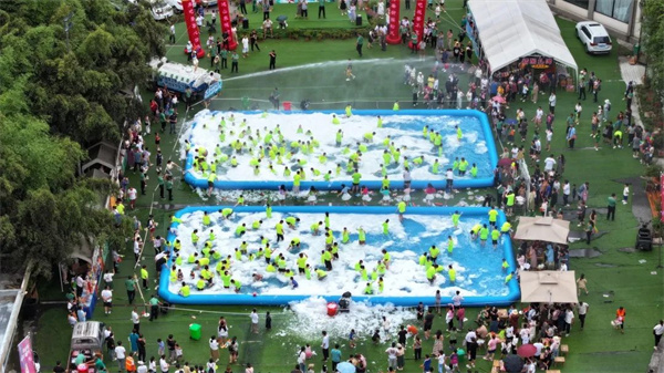 無水戰(zhàn),不夏天。8月12日下午,重渡溝音樂啤酒節(jié)萬人狂歡第五期活動“泡沫之夏,戲水奪寶”水球大作戰(zhàn),在重渡溝中心區(qū)3號停車場清涼來襲,現(xiàn)場人潮涌動、熱鬧非凡,吸引了數(shù)千名游客圍觀參與,享受到一場全新的度假體驗(yàn),清涼又刺激。