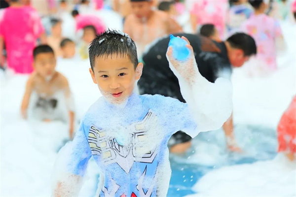 為了增添尋寶樂趣,兩架泡沫戰(zhàn)斗機(jī)火力全開,漫天飛舞的泡沫噴涌而出,純白的泡泡覆蓋了“獎池”,泡沫之下上萬顆水球蓄勢待發(fā),上百顆“幸運(yùn)水球”,摸到就有獎品,水球大戰(zhàn)一觸即發(fā)。本次活動共分為三輪,現(xiàn)場所有游客均可參與。