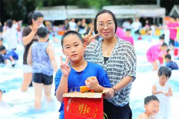 “節(jié)假日都不知道要帶孩子去哪兒玩,聽說這里舉行“水球大作戰(zhàn)”活動,一大早就來景區(qū)買票了,小朋友最喜歡玩水,還有大獎可以拿,今天他玩得可高興了。希望以后這樣的活動能多一些。”來自鄭州的李女士帶著兌換到的獎品開心不已。