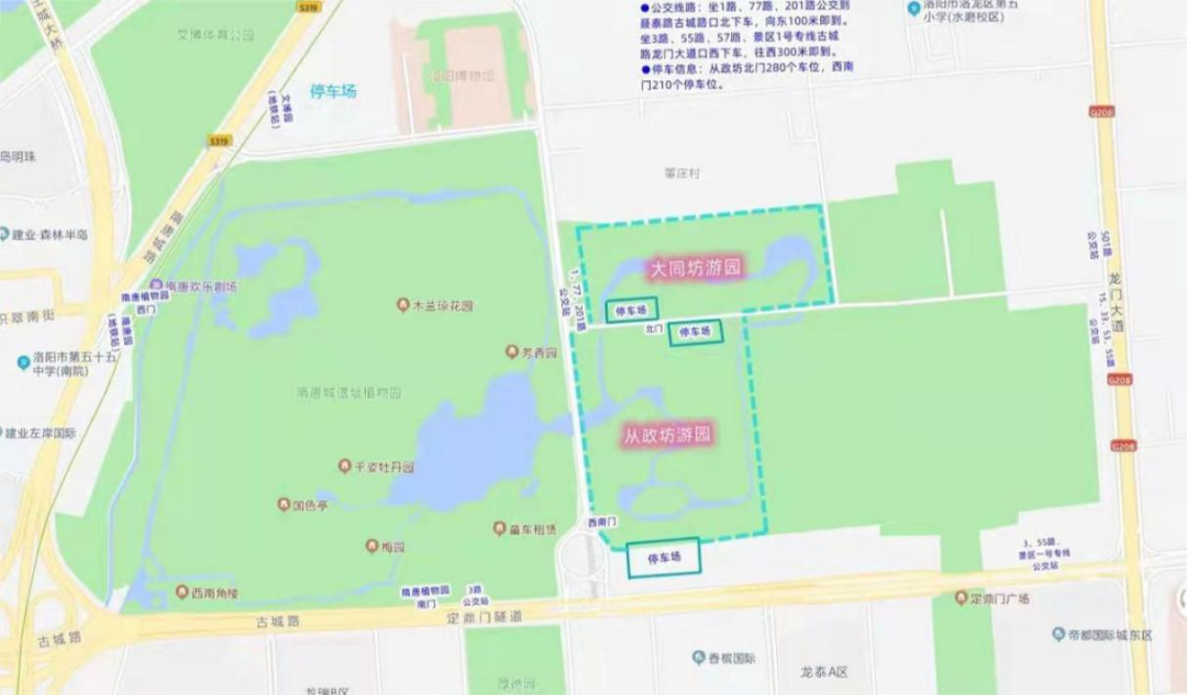 🚃公交車(chē):坐1路、77路、201路公交到聶泰路古城路口北下車(chē),向東100米即到;坐3路、55路、57路、景區(qū)1號(hào)專線古城路龍門(mén)大道口西下車(chē),往西300米即到。