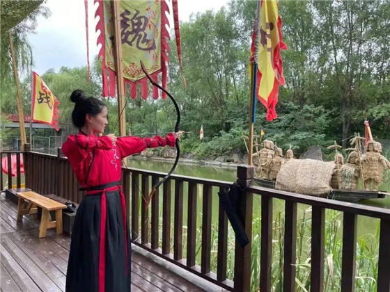 繼續(xù)向南,來(lái)到草船借箭。這里再現(xiàn)了《三國(guó)演義》中的故事場(chǎng)景,穿上古裝,挽弓射箭,讓大家過(guò)足大俠癮。