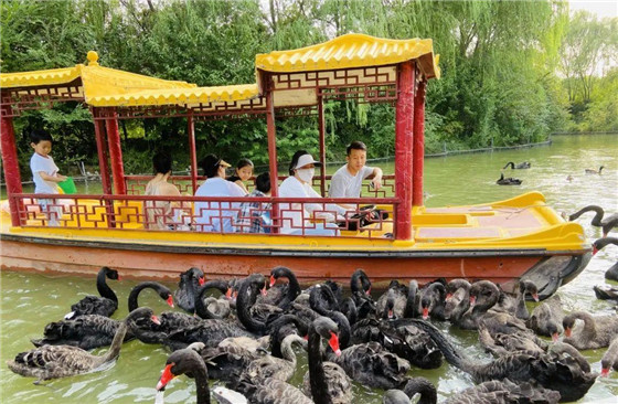 在“飛鳥(niǎo)歡歌”2號(hào)碼頭,大家可以看到黑天鵝、黑頸天鵝等珍貴水禽成群結(jié)隊(duì),隨船而行,大家也可在船上近距離觀賞、投喂,體驗(yàn)互動(dòng)野趣。