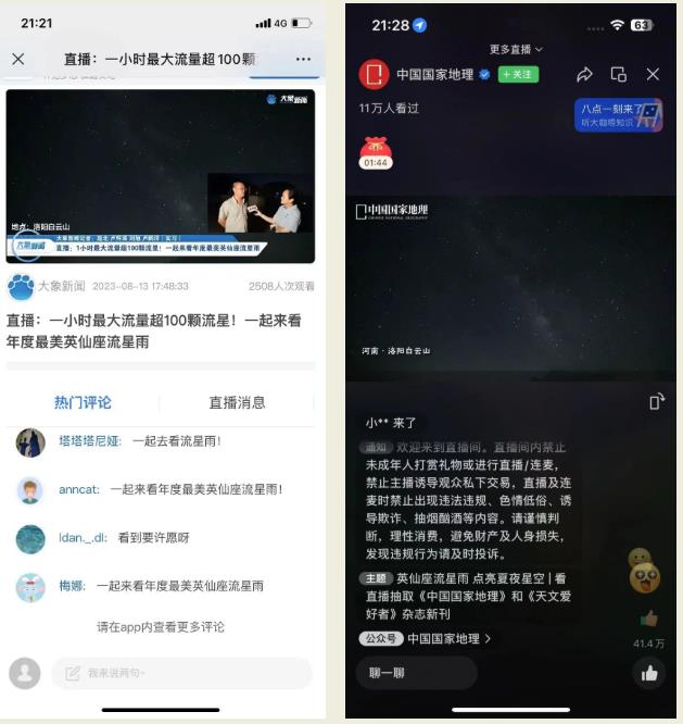 多家媒體將鏡頭聚焦在白云山上空,開展流星雨觀測直播活動,為全網(wǎng)觀星愛好者帶來絕美的英仙座流星雨線上視覺盛宴。