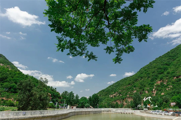 景區(qū)入口處的仙門水鎮(zhèn),盈盈湖水圍繞著民國風(fēng)韻的樓群,清涼感撲面而來。古槐樹守望在側(cè),撐起了大片陰涼。