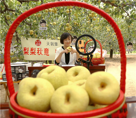主播在梨園直播帶貨 商丘日報(bào)資料照片