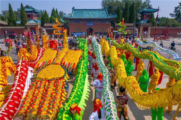 在陳家溝的祖祠里,不同膚色的太極拳愛好者深度體驗(yàn)太極拳文化的魅力;在武陟黃河岸邊,年輕的小伙兒舞動(dòng)黃河飛龍,大氣磅礴;在“萬里黃河第一觀”——嘉應(yīng)觀,“百條龍鳳”騰空而起,熱烈歡迎八方來客。
