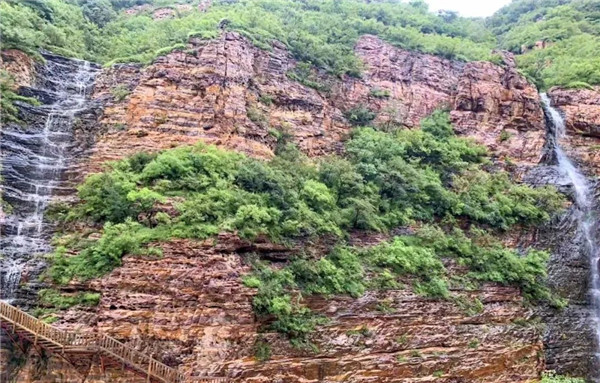 青要山上傾瀉而下的瀑流,在雨中復(fù)蘇,歡快的在壑谷中流淌,濺起水花敲擊著石面,發(fā)出悅耳的聲響。